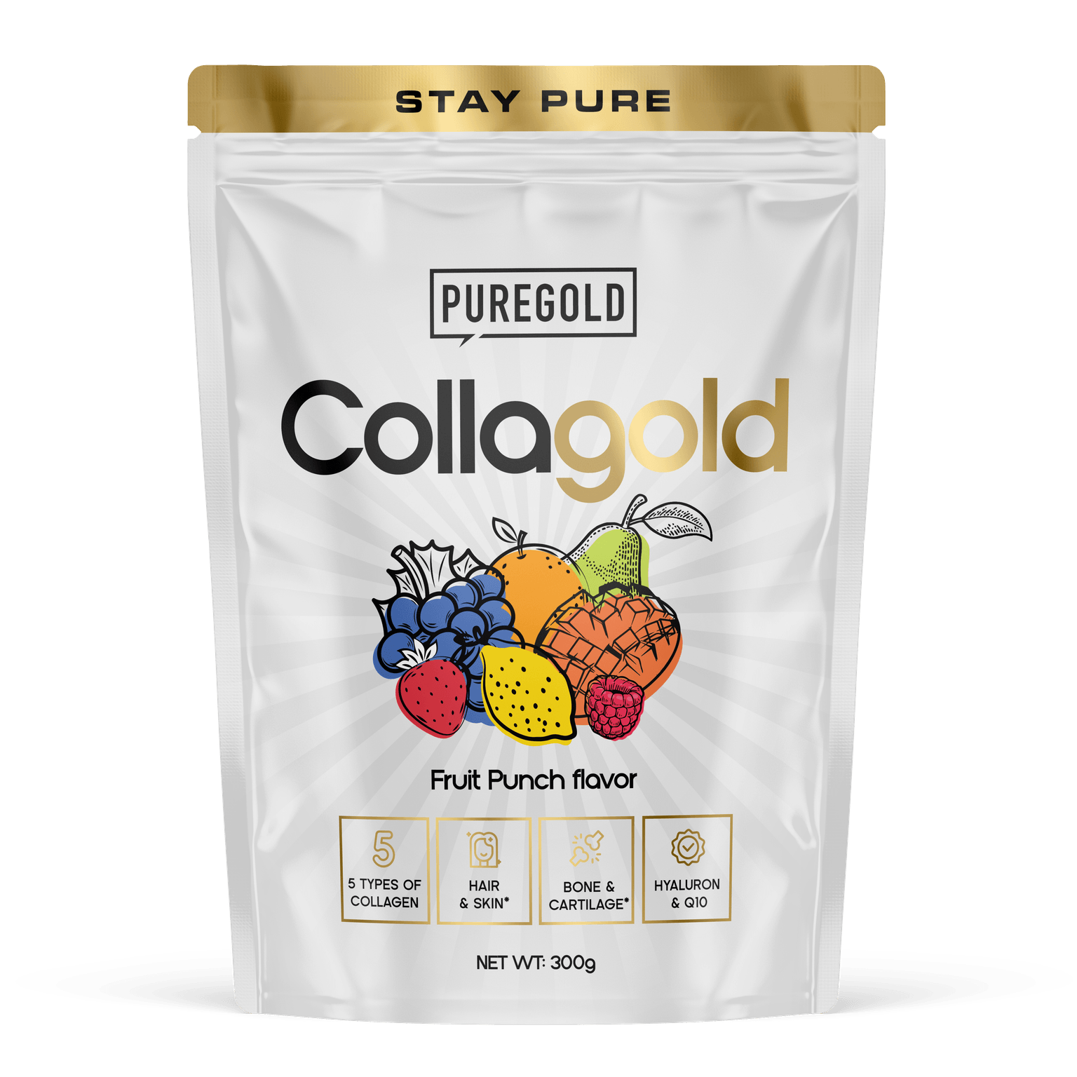 Das Pure Gold CollaGold ist eine komplexe Kollagen-Formel, die 5 verschiedene Kollagenquellen enthält. Mit hochwertigem Meeres- und Rinderkollagen, ergänzt durch Hyaluronsäure, Q10 sowie Vitamine und Mineralstoffe (Vitamin C, Vitamin A, Zink, Selen). Diese Kombination unterstützt nicht nur den Zustand von Haut, Haaren und Nägeln, sondern trägt auch zur normalen Funktion von Gelenken, Knorpeln und Knochen bei. Dank seines erfrischenden Geschmacks lässt es sich leicht in den Alltag integrieren.