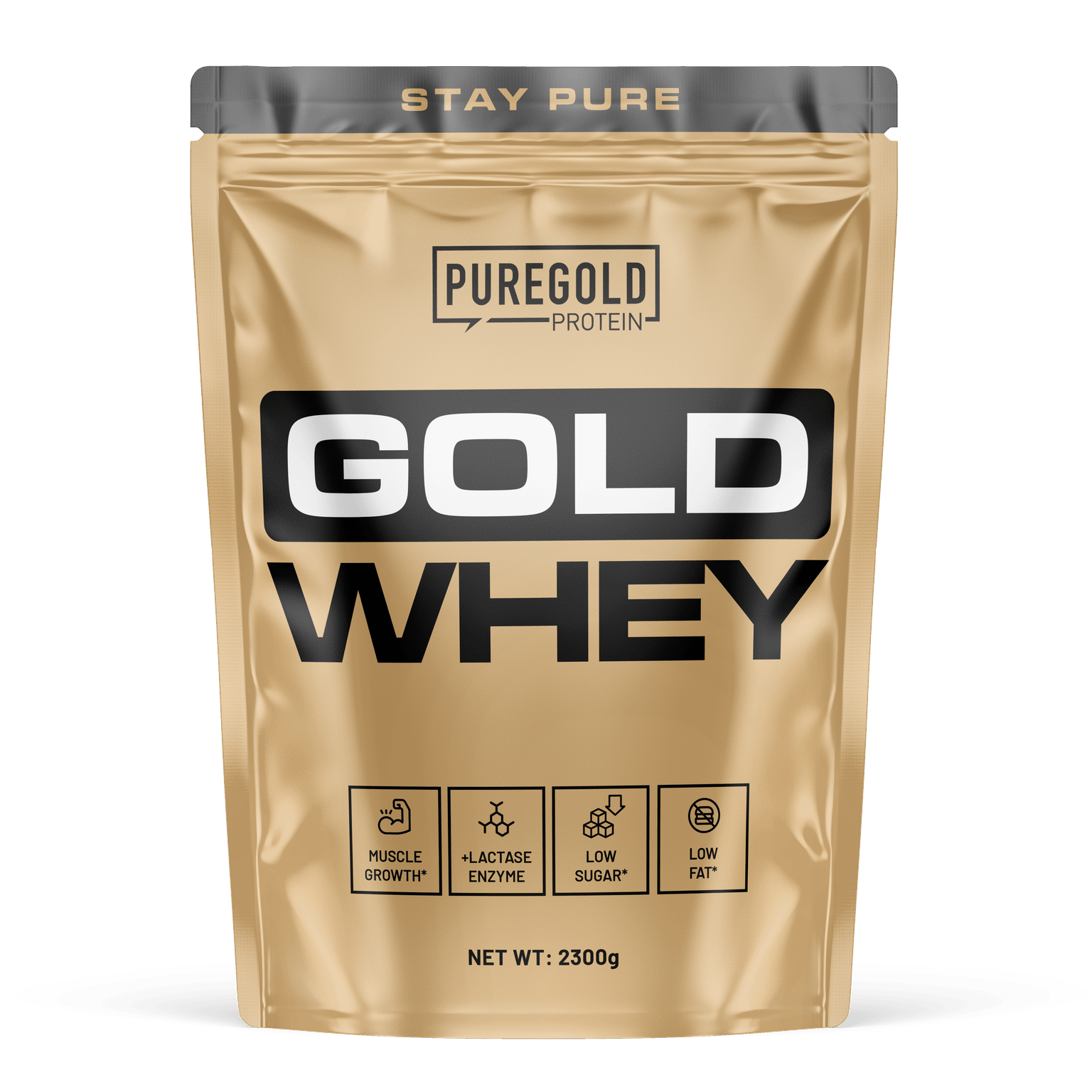 Gold WheyAromaproteinpulverPure Gold Whey Gold ist ein aromatisiertes Getränkepulver auf Basis von Molkenproteinkonzentrat mit zugesetzten Verdauungsenzymen und Süßungsmitteln.