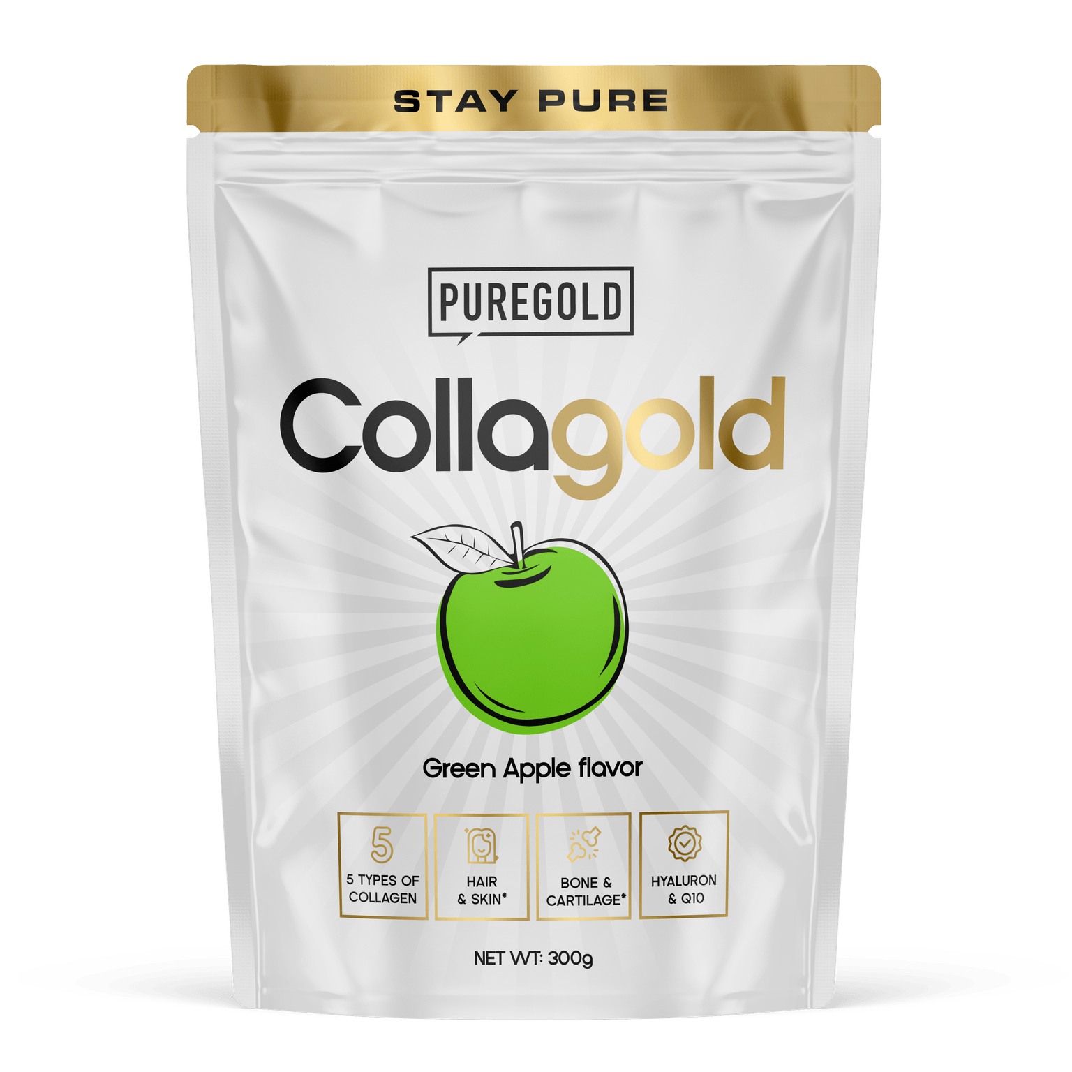 CollaGoldKomplexkollagenpulverPure Gold CollaGold ist ein Getränkepulver aus hydrolysiertem Rind- und Meeresfischkollagen mit Zusatz von hydrolysiertem Hühnerfleischpulver, Eierschalenhydrolysat, Vitaminen, Zink, Selen und Süßungsmitteln.