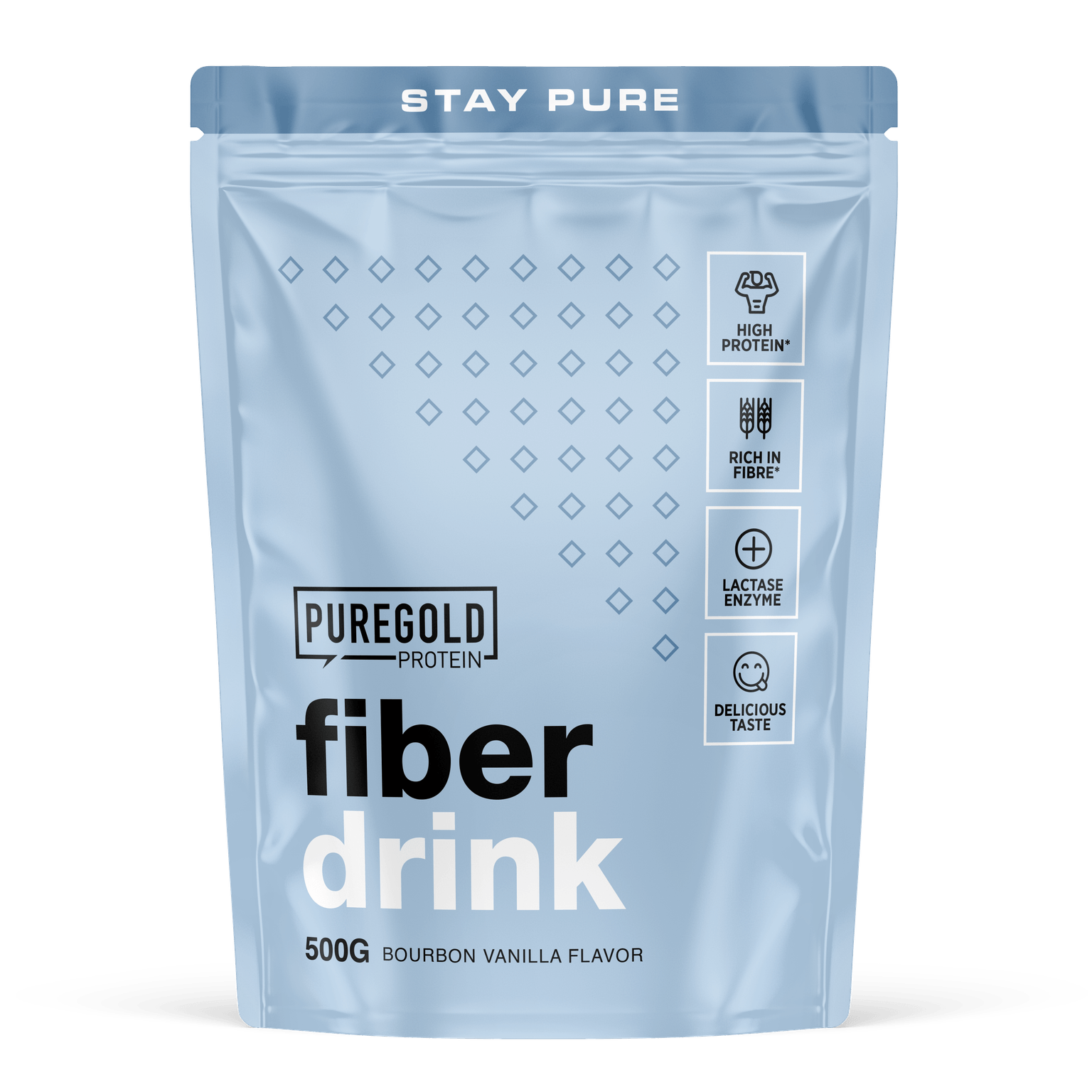 Fiber DrinkProteinfaserpulverPure Gold Fiber Drink ist ein aromatisiertes Getränkepulver auf Molkenproteinbasis mit Zusatz von Wegerichsamenschalenmehl, Inulin, Glucomannan, Laktaseenzym und Süßungsmitteln. {x000D_}